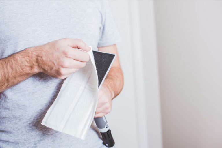 Slipa ytan jämn när spacklet har torkat och borsta bort slipdammet med hjälp av en mikrofiberduk.