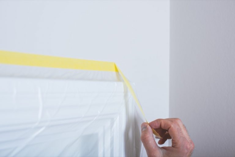 Hur försiktig man än är, är det lätt hänt att det skvätter färg när man målar innertak. För att du ska slippa en massa tråkigt jobb med att tvätta och skrapa bort färgstänk i efterhand, sätt täckplast över dörrar och fönster – och plasta även väggarna om de inte ska målas.
