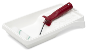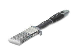 Börja med en liten pensel och måla längs kanterna på varje steg. Sedan tar du minirollern på de stora ytorna. Efterstryk med pensel om du vill ha en helt slät yta. Måla sidorna och alla sättstycken med pensel – en snedställd lackpensel och en liten vinkelpensel är bra tips.