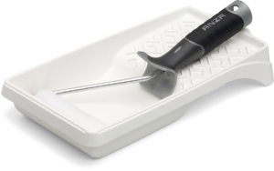 En fasadmålare behöver minst två penslar. En bred fasadpensel som tar upp mycket färg, så att du slipper doppa stup i ett och en lång vinkelpensel för alla svåråtkomliga ytor. För rödfärger passar en rejäl rödfärgspensel. Tips: Välj bredd på fasadpenseln efter fasadpanelens bredd. Är panelen ca 100 mm bred, välj en 100 mm fasadpensel som täcker hela panelens bredd så blir jobbet både enklare och går fortare. Tänk även på att ni kan behöva fler penslar om ni är fler som målar så går arbetet ännu fortare. Ha också ett förlängningsskaft till hands. Då når du längre både från marken och stegen, och skonar rygg och armar.
