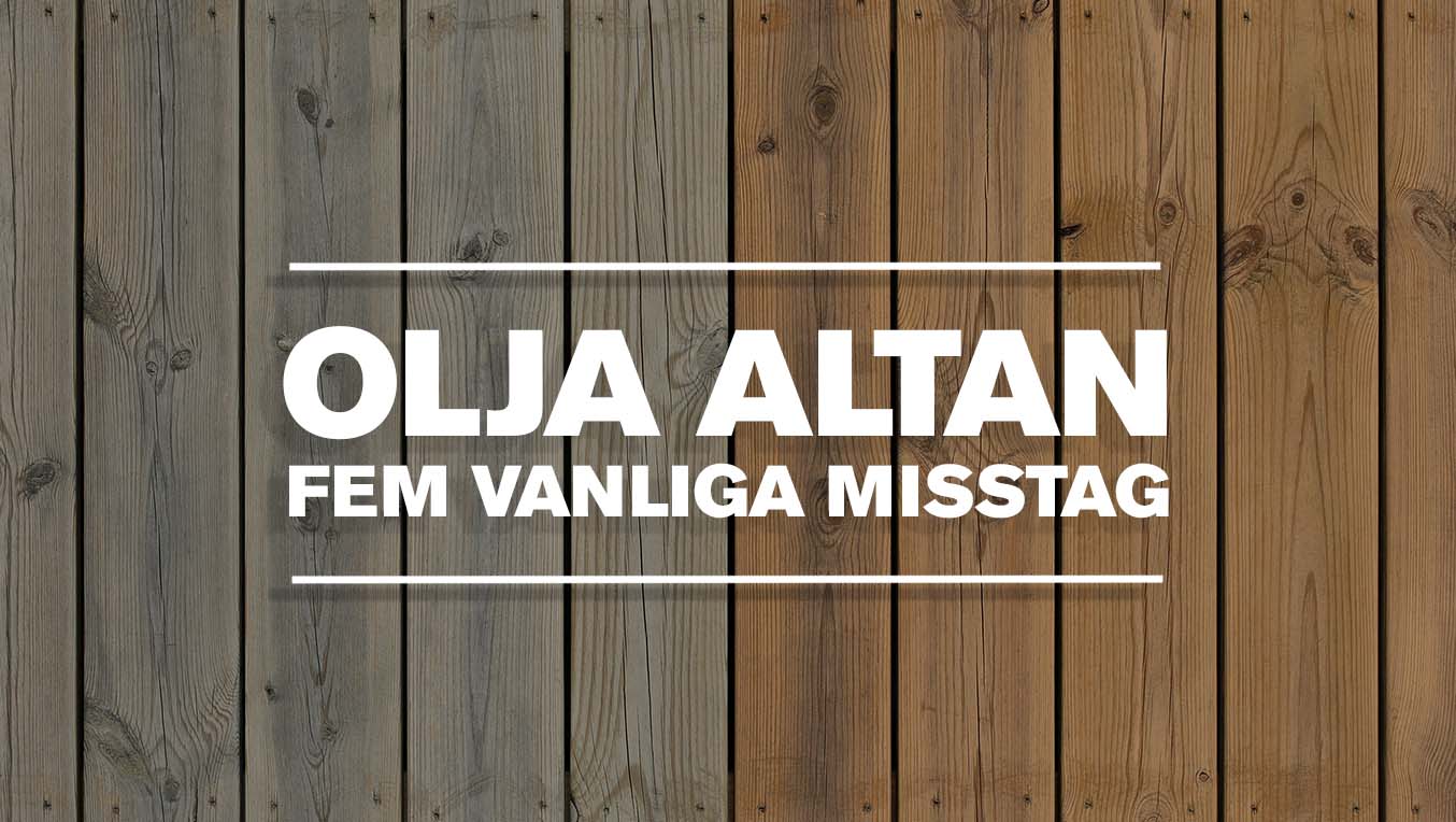 Undvik att olja ytorna i starkt solsken. Då kan oljan hinna torka innan den har trängt in i träet. Börja inte heller olja för sent på kvällen, eftersom det finns risk att daggen lägger sig på ytan innan den hunnit torka.