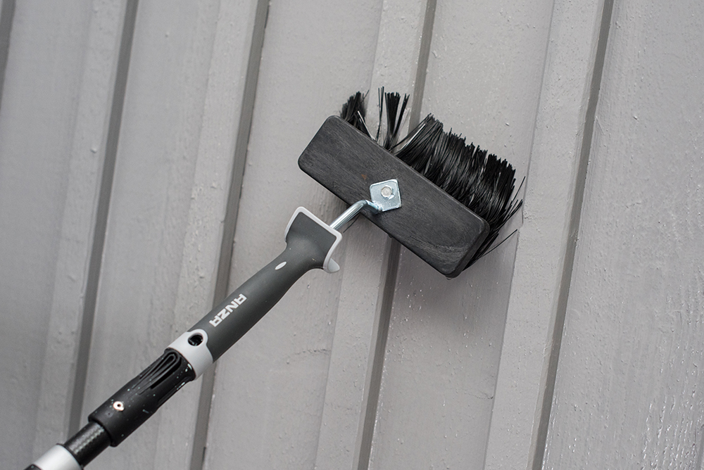 Vi testade Platinum fasadpensel och en vanlig fasadpensel på fasadpanel. Fasaden ser likadan ut efter en strykning, men det är stor skillnad under ytan.