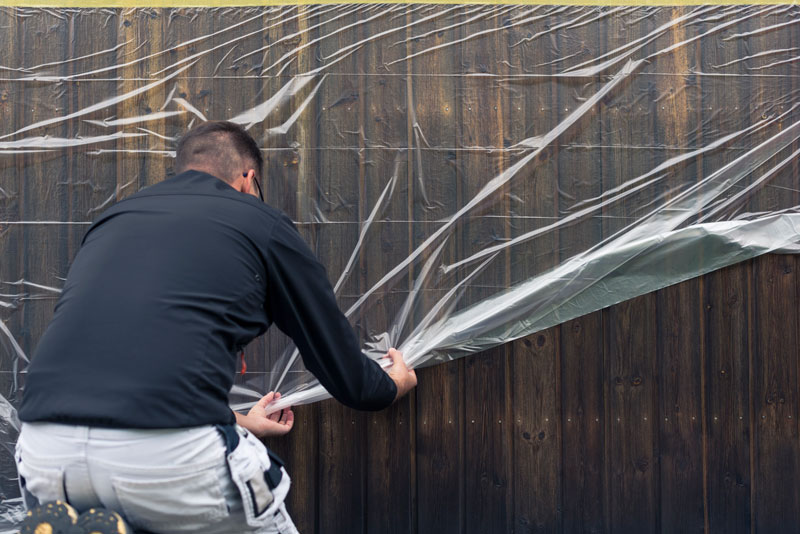 Var noga med skydda husfasad, växter och andra föremål med täckplast innan du tvättar altanen. Vissa rengöringsmedel kan etsa på ytor som glas och aluminium och är därför extra viktiga att täcka in. Läs rekommendationerna på förpackningen.