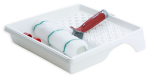 Sedan tar du en roller och målar de stora ytorna. Använd förlängningsskaft så sparar du både tid och rygg. Arbeta med ryggen mot utgången, så att du inte målar in dig i ett hörn.