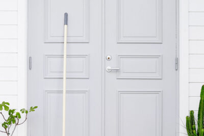 Sätt täckplast över alla dörröppningar i hallen för att inte sprida slipdamm till andra rum. Sätt gärna täckplast på båda sidor av dörröppningen för att skapa en sluss.