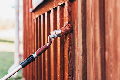 Här finns alla tips och instruktioner du behöver för att måla fasaden med rödfärg. Tänk på att måla när träet är torrt och svalt. Annars kan färgen krackelera.