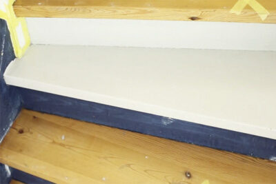 Nu är det dags att måla trappa! Börja med en liten pensel och måla längs kanterna på varje steg. Måla sen de stora ytorna med en miniroller.