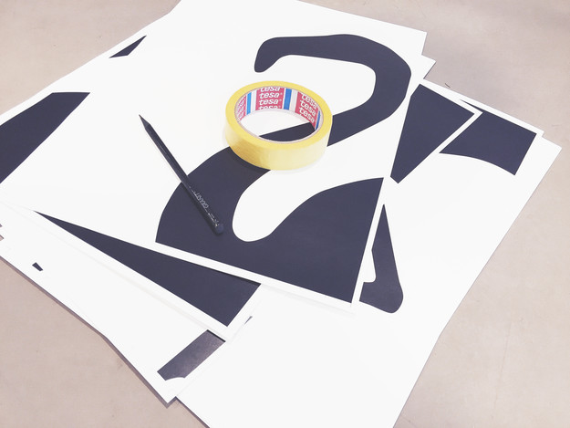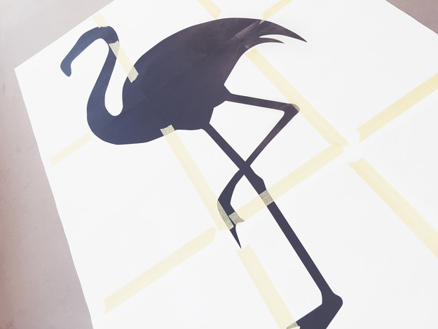 Skriv ut motivet och sätt ihop dem med maskeringstejp. Skapa en mall genom att klippa ut motivet med en tapetsax som ger skarpa kanter.
