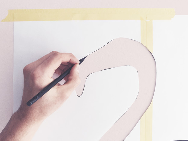 Fäst mallen på väggen med maskeringstejp och skissa konturerna med en blyertspenna.