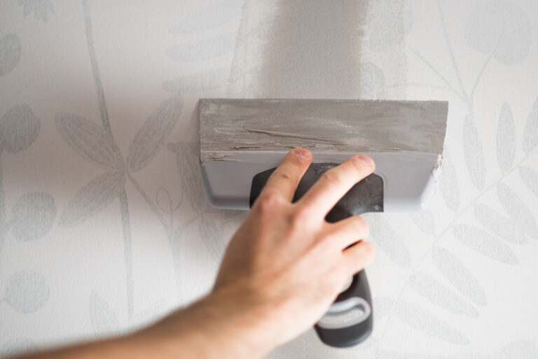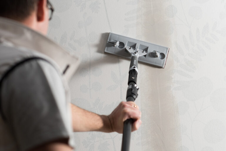 Efter att tapeten tagits bort kan ytan vara ojämn – och då behöver den bredspacklas. Spackling av större väggytor är ett lite svårare måleriprojekt. Behöver du hjälp att spackla finns våra steg-för-steg-guider här: Spackla. Efter bredspacklingen måste du slipa väggen ordentligt tills du får en helt slät yta. Se till att få bort allt slipdamm.