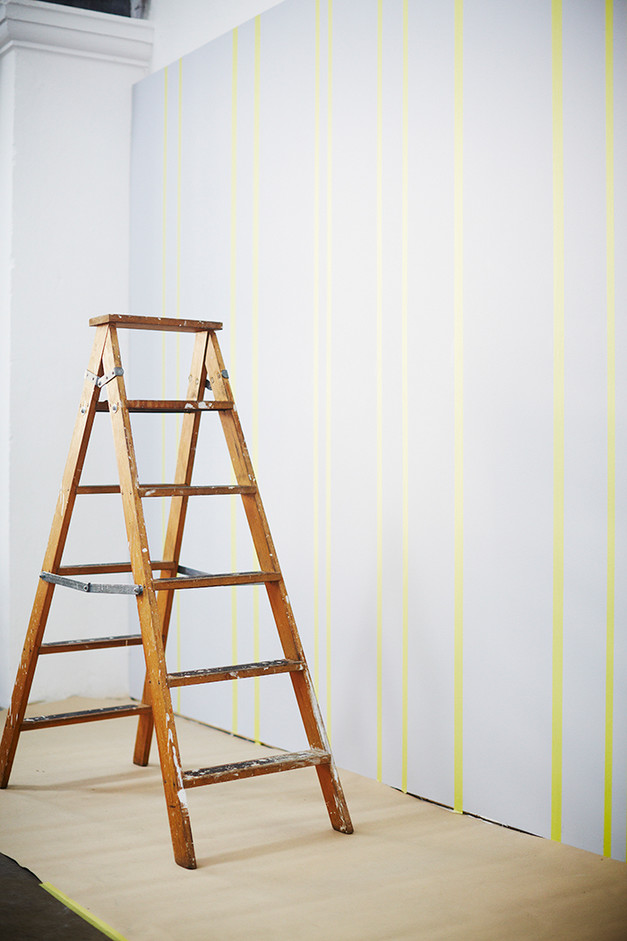 Använd tumstock och maskeringstejp för att skapa olika ränder och ytor på väggen. Välj kvalitetstejp som ger riktigt skarpa färgkanter.