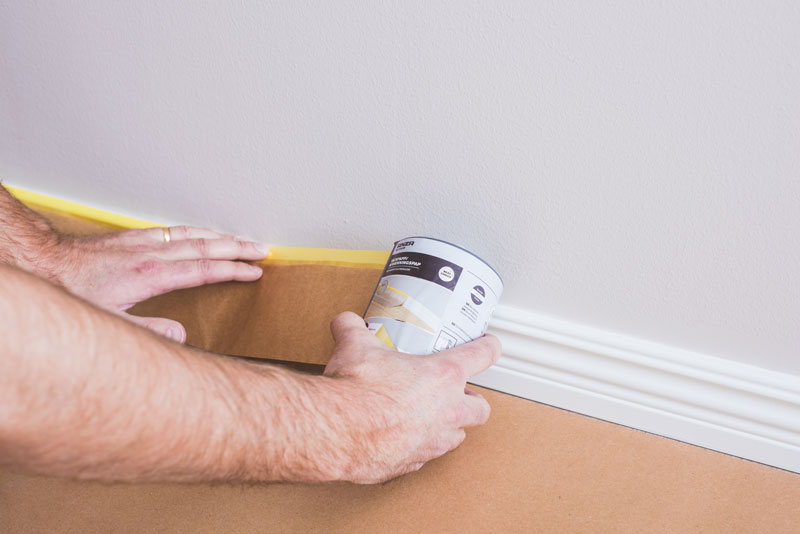 Börja alltid med att täcka och maskera alla ytor som du inte ska måla, så att du inte får färg på oönskade ytor. Använd exempelvis vår täckpapp för att maskera lister. Se sedan till att väggen är ren och jämn för att få ett bra slutresultat. Har du exempelvis hål och ojämnheter bör du spackla innan du målar.