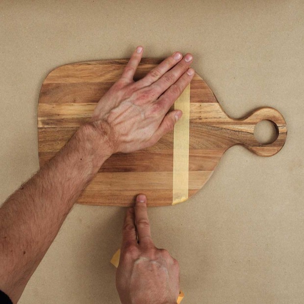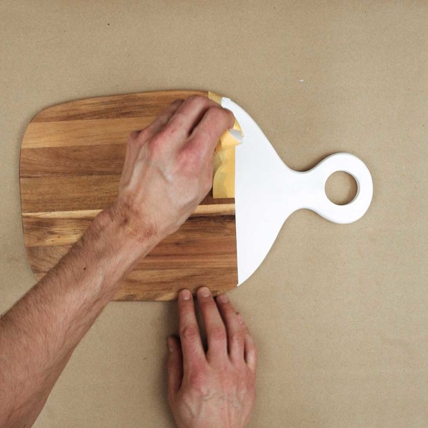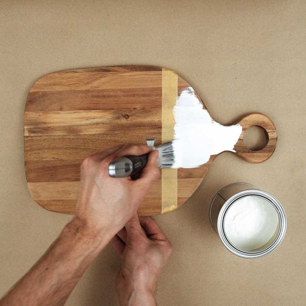 Måla skärbrädan med önskad kulör. Använd en snickerifärg för att färgen ska fästa ordentligt.