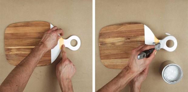 Måla skärbrädan och salladsbesticken i trä. Med detta enkla DIY-tips, blir de ett fint inslag i köket, på matbordet eller som present.