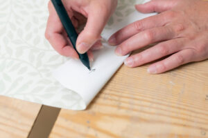 Mät ut på tapeten och lägg till 1 cm. Skär till våden.