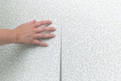 Känn lite i skarvarna hur hårt den gamla tapeten sitter. Du bör grundmåla med tapetgrund för en bra yta för spackling och tapetsering – sen beror det även på vilken tapet som sitter på väggen.