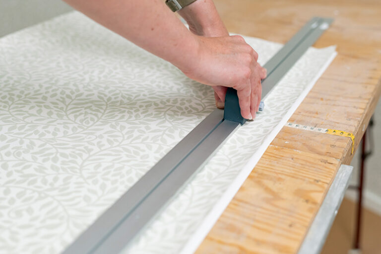Används tillsammans för att skära våder och passbitar i rätt längd och bredd. Tapetklossens kanter passar i spåren på tapetlinjalen.