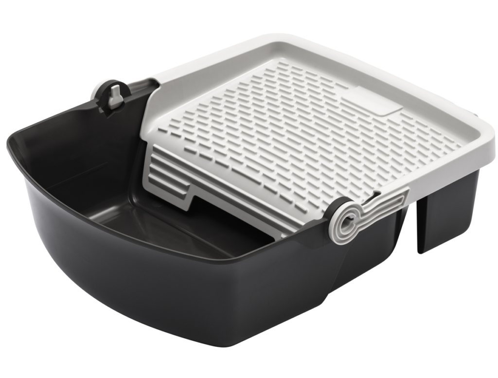 - Rullytan är lätt att klicka av och rengöra, och fungerar även som handtag för att enkelt flytta runt tråget