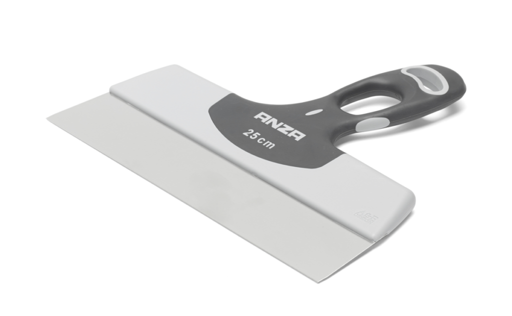Ska du måla eller tapetsera en yta som har hål eller ojämnheter? Då behöver du spackla med hjälp av en bredspackel först. Denna bredspackel med gummerat skaft är ergonomiskt utformad och hålls i ett palettgrepp för optimal kontroll, och har ett patenterat tumhål för att ge dig möjlighet att få ett extra bra grepp om spackeln utan att överanstränga handen. Kan även förlängas med hjälp av vår bredspackelhållare och förlängningsskaft för extra räckvidd. Använd gärna två bredspacklar vid spackling, en mindre spackel som får plats i hinken och en bredare som används för utstrykning.